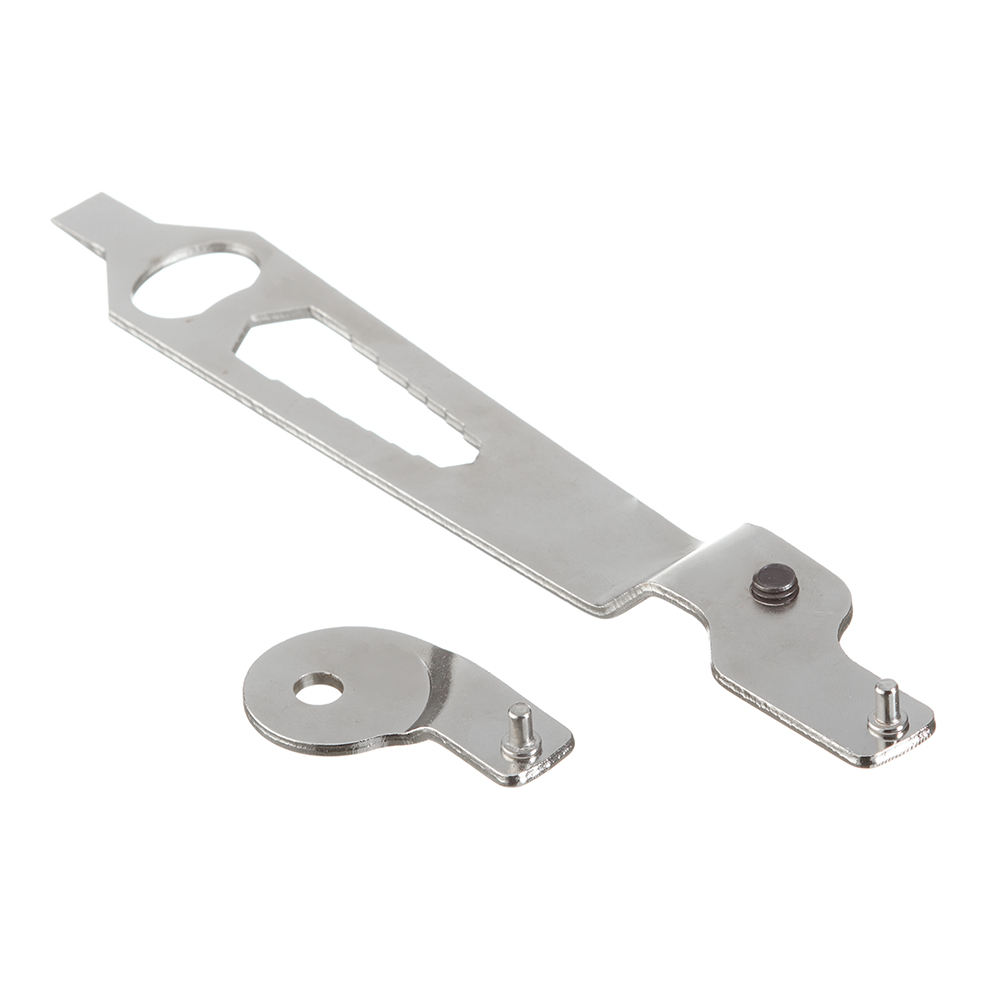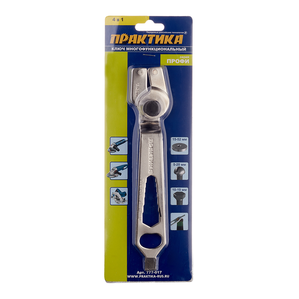 Предназначен для затягивания и отворачивания гаек М14 малых и больших угловых шлифмашин с расстоянием между отверстиями 26, 30 и 35мм при установке на машину отрезных и шлифовальных кругов. На рукоятке ключа имеется плоская отвертка для фиксации кожуха шлифмашины.