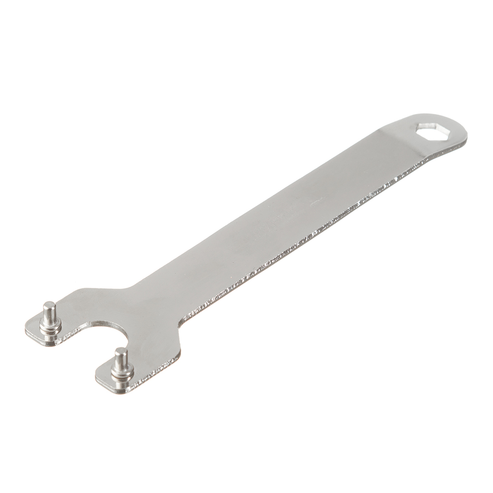 Предназначен для затягивания и отворачивания гаек М14 малых угловых шлифмашин с расстоянием между отверстиями 30 мм при установке на машину отрезных и шлифовальных кругов.