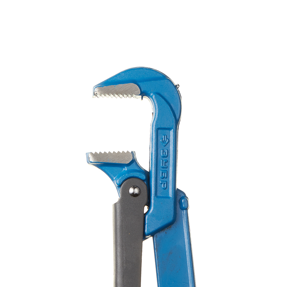 Ключ трубный предназначен для работ с трубами и крепежом различной формы и размера. Имеет длительный срок службы.rnЦельнокованая конструкция и специальная форма губок позволяют применить инструмент при больших нагрузках. Выполнен из высококачественной хромованадиевой стали.rnДля увеличения износостойкости зубцы подвергнуты индукционной закалке токами высокой частоты до твердости 53 – 59 HRC.rnУгол наклона зубьев обеспечивает максимально возможное усилие захвата. Максимальный захват – 25 мм.rnПредохранительный стопор для регулировочной гайки препятствует ее полному откручиванию.