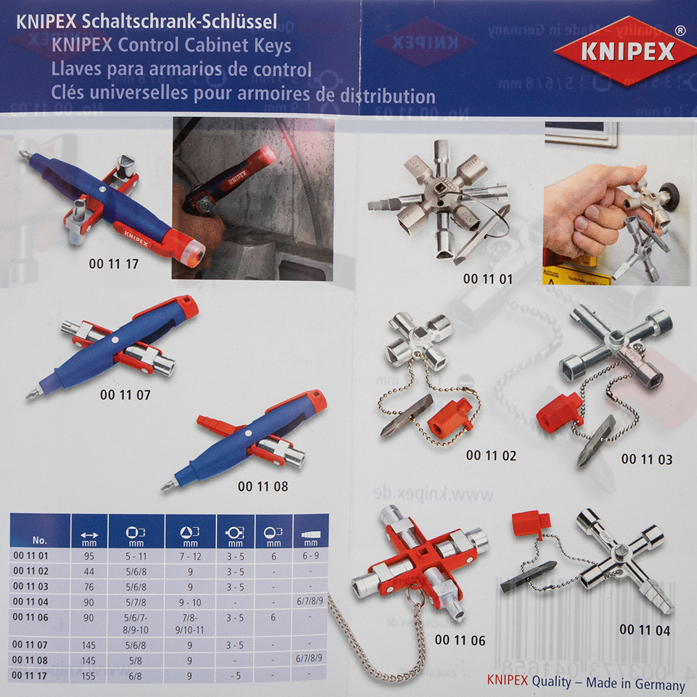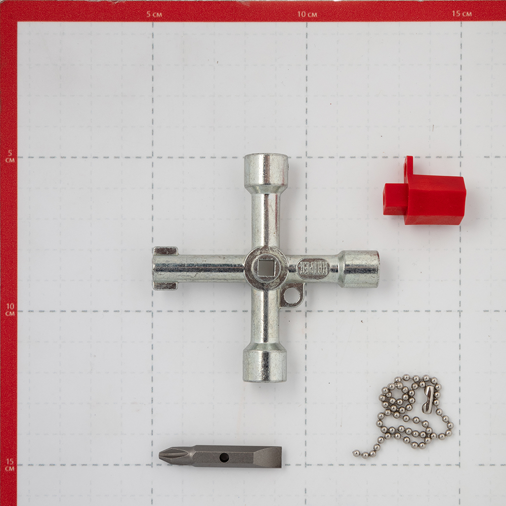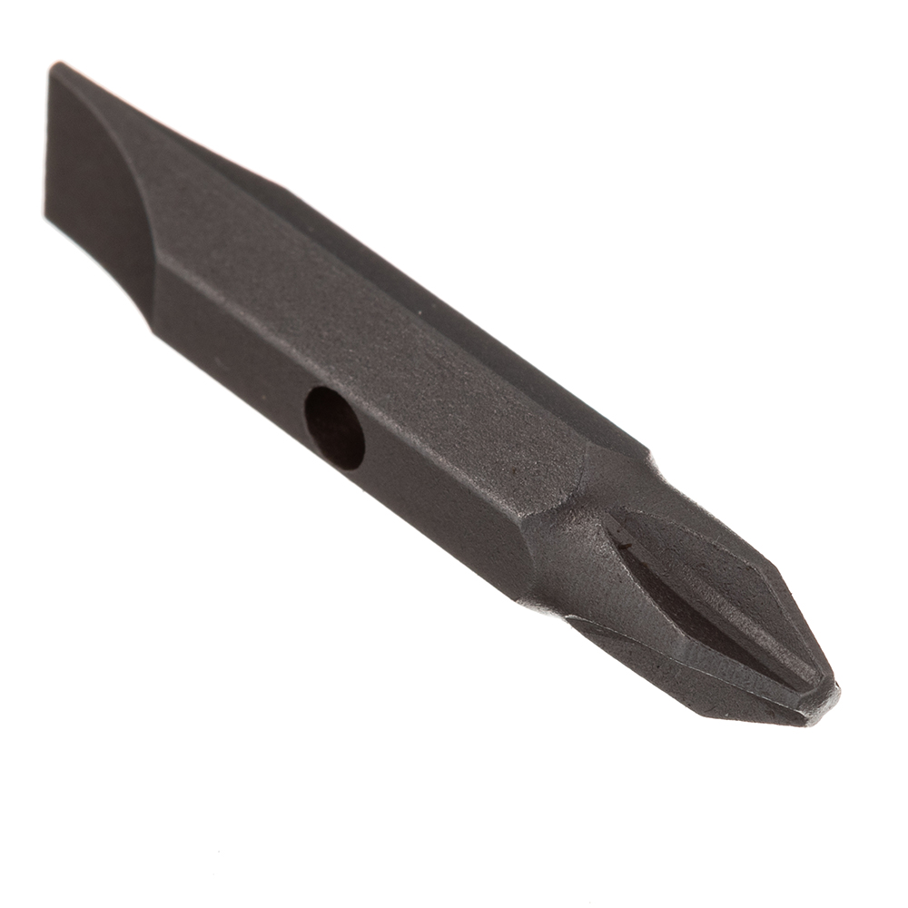 Предназначен для использования в инженерных системах зданий (отопление и сантехника, вентиляционная техника и системы кондиционирования, электротехника), сетях газо – и водоснабжения и системах блокировки. Бита двусторонняя: профиль SL1,0 x7 мм и профиль PH 2. С адаптером для бит 1/4на прочной цепочке. Дополнительное гнездо для установки бит 1/4. Дополнительный квадрат 5 мм. Отливка из цинка под давлением. Удлиненная конструкция, длина – 76 мм.