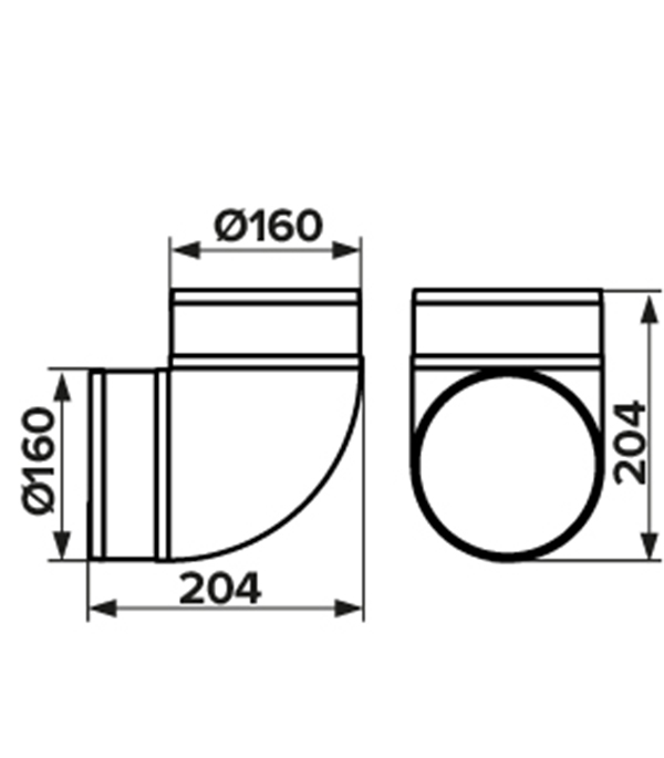 Колено для круглых воздуховодов ERA пластиковое d160 мм 90°