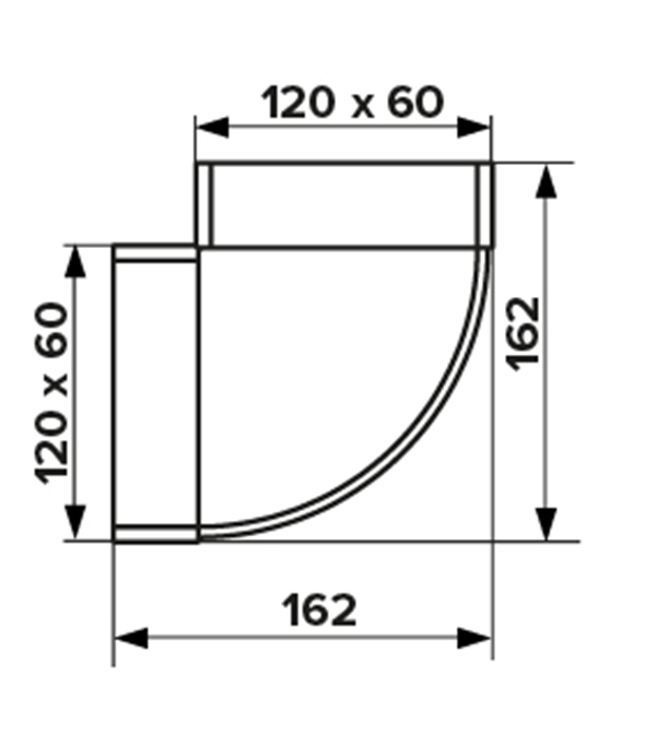 Колено горизонтальное пластиковое для плоских воздуховодов 60х120 мм 90°