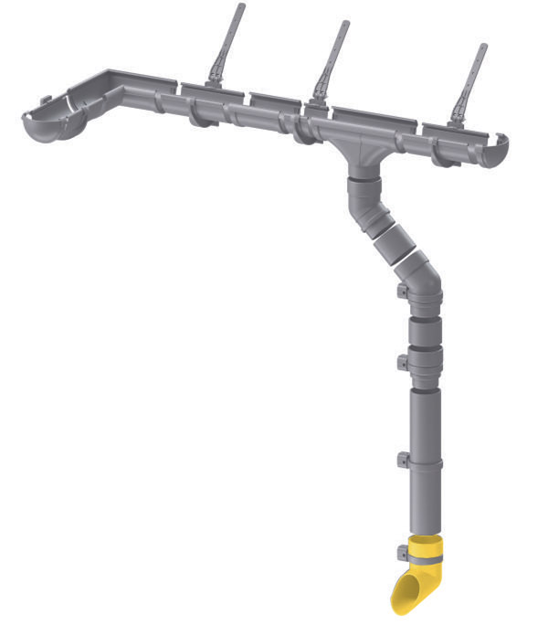 Предназначен для отвода воды из водосливной системы на землю или в дренаж. Изготовлен из поливинилхлорида Элементы просто соединяются друг с другом и легко защелкиваются. При этом каждое соединение трубы или желоба с фитингом являются компенсатором температурного расширения/сжатия.
