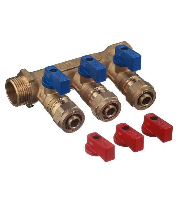 Предназначен для равномерного распределения и поступления воды от главного трубопровода по металлопластиковым трубам к сантехнике и другим потребителям без потери напора воды. Позволяет изолировать часть системы в случае неисправностей и проводить ремонт, не производя при этом общего отключения водоснабжения. Используется для разделения потока воды из одной трубы на три линии, путем присоединения металлопластиковых труб диаметром 16 мм методом обжима. Имеет с одного входа внутреннюю резьбу 3/4(20 мм) с другого входа наружную резьбу 3/4(20 мм), что поволяет соединять коллекторы между собой увеличивая количество отводимых линий. Межосевое расстояние между отводами 36 мм.