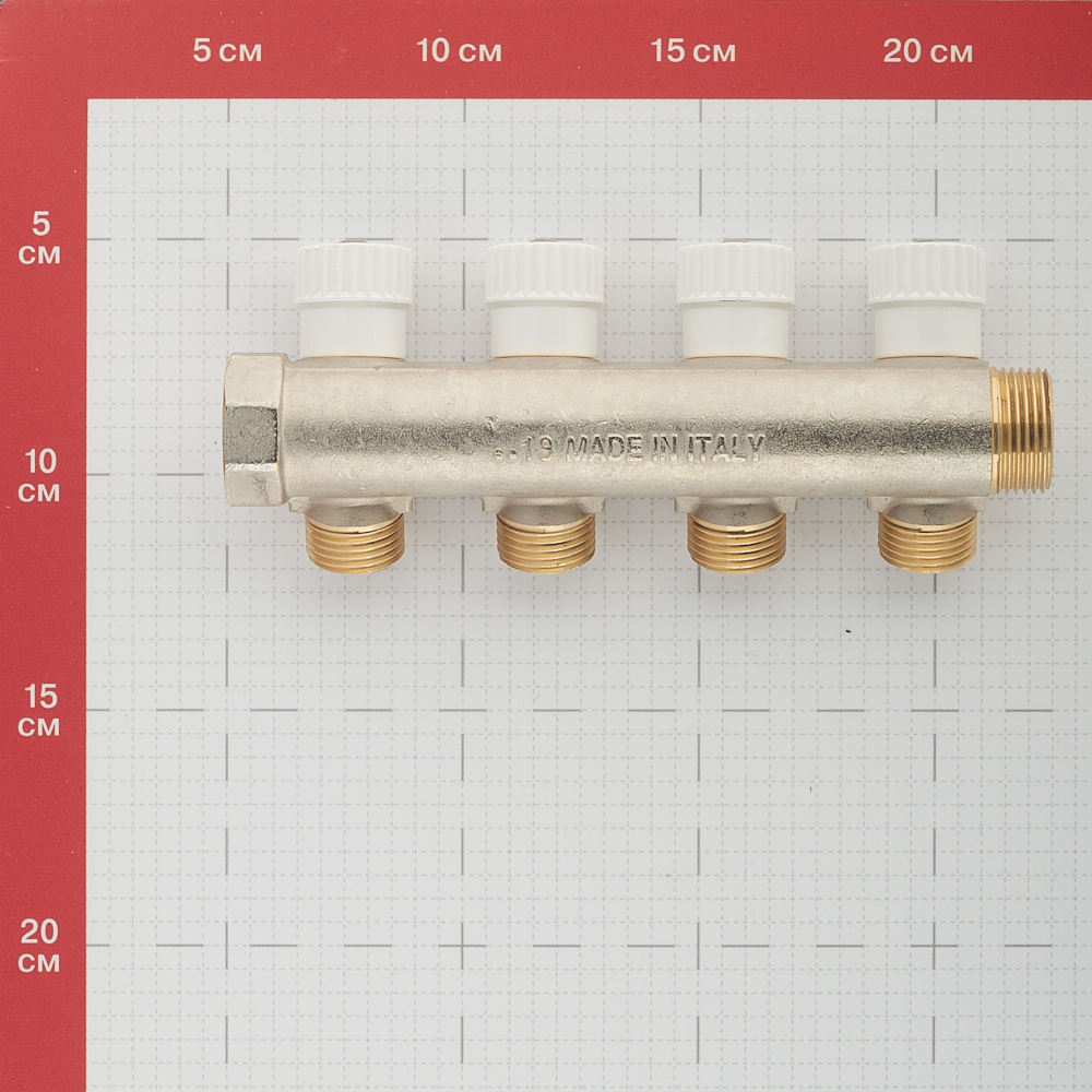 Коллектор Stout (SMB 6851 341204) 3/4 ВР(г) х 4 выхода 1/2 НР(ш) х 3/4 НР(ш) регулируeмый
