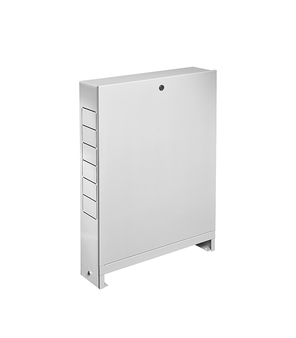 Предназначен для монтажа в нем коллекторов систем отопления и водоснабжения.rnВ боковых стенках корпуса шкафа выполнена перфорация, сегменты которой удаляются в любом удобном месте для подсоединения трубопроводов.rnВнутри шкафа установлены универсальные профильные крепления, позволяющие располагать оборудование по всей высоте и ширине шкафа.rnШкаф имеет регулировки по высоте до 40 мм за счет выдвижных ножек.rnКрепление шкафа к полу осуществляется с помощью отверстий в выдвижных ножках, а к стене – с помощью отверстий в задней стенке.rnДля защиты от несанкционированного доступа шкаф оснащен внутренним замком «под монетку».