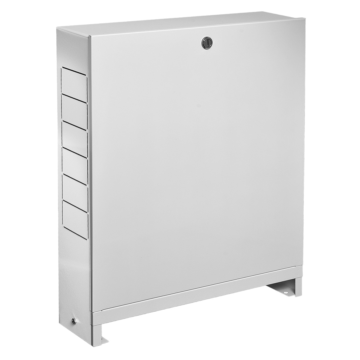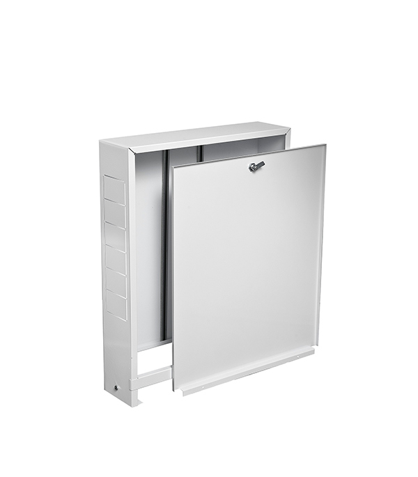 Предназначен для монтажа в нем коллекторов систем отопления и водоснабжения.rnВ боковых стенках корпуса шкафа выполнена перфорация, сегменты которой удаляются в любом удобном месте для подсоединения трубопроводов.rnВнутри шкафа установлены универсальные профильные крепления, позволяющие располагать оборудование по всей высоте и ширине шкафа.rnШкаф имеет регулировки по высоте до 40 мм за счет выдвижных ножек.rnКрепление шкафа к полу осуществляется с помощью отверстий в выдвижных ножках, а к стене – с помощью отверстий в задней стенке.rnДля защиты от несанкционированного доступа шкаф оснащен внутренним замком «под монетку».