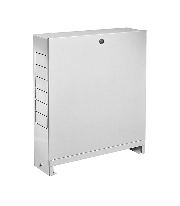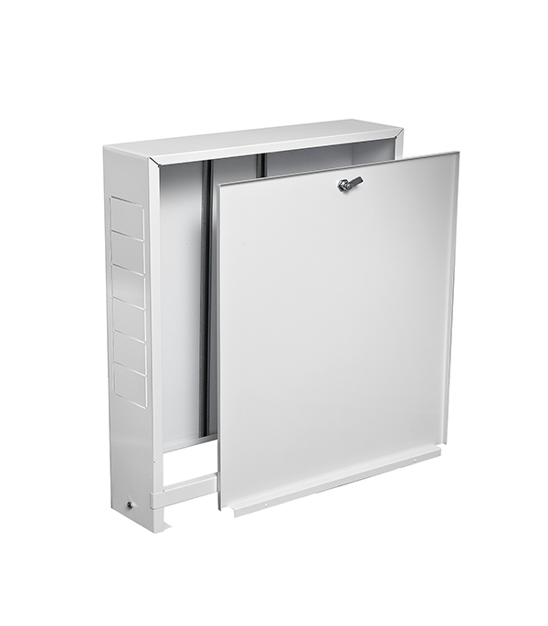 Предназначен для монтажа в нем коллекторов систем отопления и водоснабжения.rnВ боковых стенках корпуса шкафа выполнена перфорация, сегменты которой удаляются в любом удобном месте для подсоединения трубопроводов.rnВнутри шкафа установлены универсальные профильные крепления, позволяющие располагать оборудование по всей высоте и ширине шкафа.rnШкаф имеет регулировки по высоте до 40 мм за счет выдвижных ножек.rnКрепление шкафа к полу осуществляется с помощью отверстий в выдвижных ножках, а к стене – с помощью отверстий в задней стенке.rnДля защиты от несанкционированного доступа шкаф оснащен внутренним замком «под монетку».