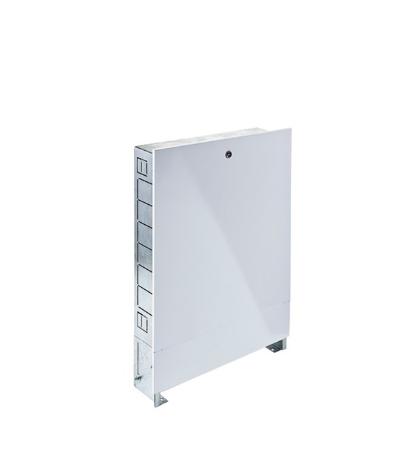Предназначен для монтажа в нем коллекторов систем отопления и водоснабжения. Устанавливаются в специально выполненный проем в стене.rnВ боковых стенках корпуса шкафа выполнена перфорация, сегменты которой удаляются в любом удобном месте для подсоединения трубопроводов.rnВнутри шкафа установлены универсальные профильные крепления, позволяющие располагать оборудование по всей высоте и ширине шкафа.rnКрепление к полу осуществляется с помощью отверстий в выдвижных ножках.rnВ стенной нише шкаф фиксируется с помощью отгибных фиксаторов.rnШкаф имеет регулировки по высоте от 670 мм до 760 мм за счет выдвижных ножек и по глубине от 125 мм до 195 мм за счет выдвижной рамки.rnДля защиты от несанкционированного доступа шкаф оснащен внутренним замком «под монетку».