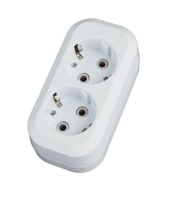 Колодка электрическая Düwi (28633 2) с заземлением 16 А 230 В 3,6 кВт 2 розетки IP20 белая