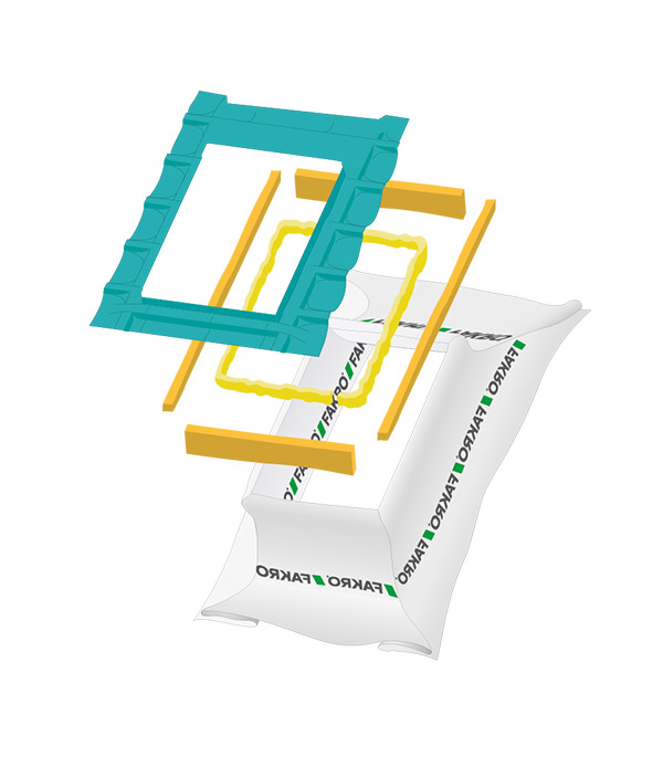 Комплект помогает решить задачу по надежному и полноценному сопряжению мансардного окна и всех слоев кровельного «пирога». Комплект гидро, -паро, -теплоизоляции обеспечивает комплексную защиту теплоизоляционного материала от влаги и дополнительное утепление.rnУтепленный гидроизоляционный оклад XDP – супердиффузионная мембрана Eurotop, представляет собой сплошную полимерную пленку, защищенную двумя слоями нетканого полипропиленового полотна. Оклад XDS предотвращает проникновение конденсата и паров изнутри помещения.rnВнутренний пароизоляционный оклад XDS – полиэтилен высокой плотности. Оклад XDP обеспечивает надежную защиту от осадков снаружи. rnСамоклеющаяся лента используется для герметичного соединения с основным пароизоляционным слоем.