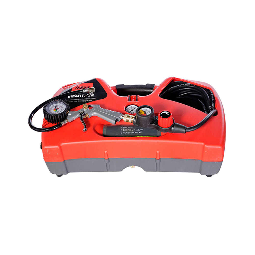 Компрессор – 1 шт.; Воздушный шланг 3 м – 1 шт.; Продувочный пистолет – 1 шт.; Пистолет для накачки шин – 1 шт.; Насадка для надувки мячей – 1 шт.; Насадка для накачки матрасов – 1 шт.; Насадка для накачки велосипедных колес – 1 шт.