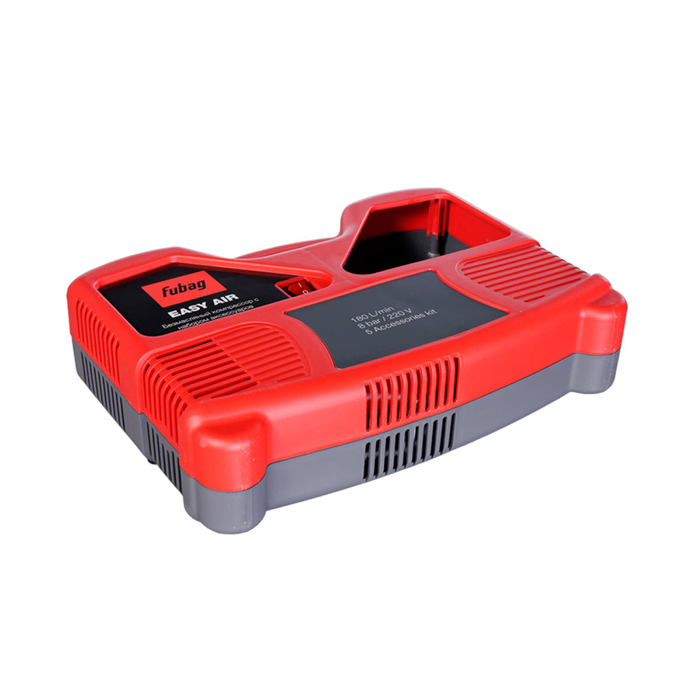 Простой в использовании многофункциональный набор с компрессором Fubag Easy Air – отличное решение для получения качественного сжатого воздуха в условиях оперативного ремонта и ежедневного домашнего использования. При весе всего 6.5 кг безмасляный компрессор-кейс обеспечивает производительность 180 л/мин. Компрессор работает от бытовой сети 220 В. Оптимальное сочетание основных характеристик компрессора и пневмоинструмента гарантируют высокую производительность. Компрессор Fubag Easy Air позволяет обеспечить чистым воздухом различные пневмоинструменты, рабочее давление которых не превышает 8 бар. Корпус компрессора выполнен из высокопрочного пластика, который, помимо защитных функций, исполняет роль шумоизолятора. В корпусе предусмотрен отсек для хранения шланга, пистолета, шнура. На внутренней поверхности крышки, имеются фиксаторы для хранения насадок. Благодаря компактным размерам, небольшому весу и ручке для переноски набор компрессорного оборудования легок в транспортировке и хранении. Может перевозиться как вертикальном, так и в горизонтальном положениях.