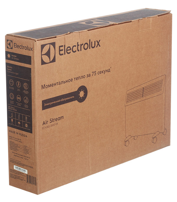 Электрический конвектор серии Air Stream – продукт индустриального искусства. Аэродинамическая форма конвектора не имеет аналого в мире. Специальное ракушечноепокрытие нагревательного элемента позволило увеличить площадь поверхности теплоотдачи на 25% (по сравнению со стандартными монолитными нагревательными элементами). Всего за 75 секунд нагревательный элемент выходит на свою полную мощность. Все данные о работе прибора выводятся на LED-дисплелй высокоточный электронноготермостата.