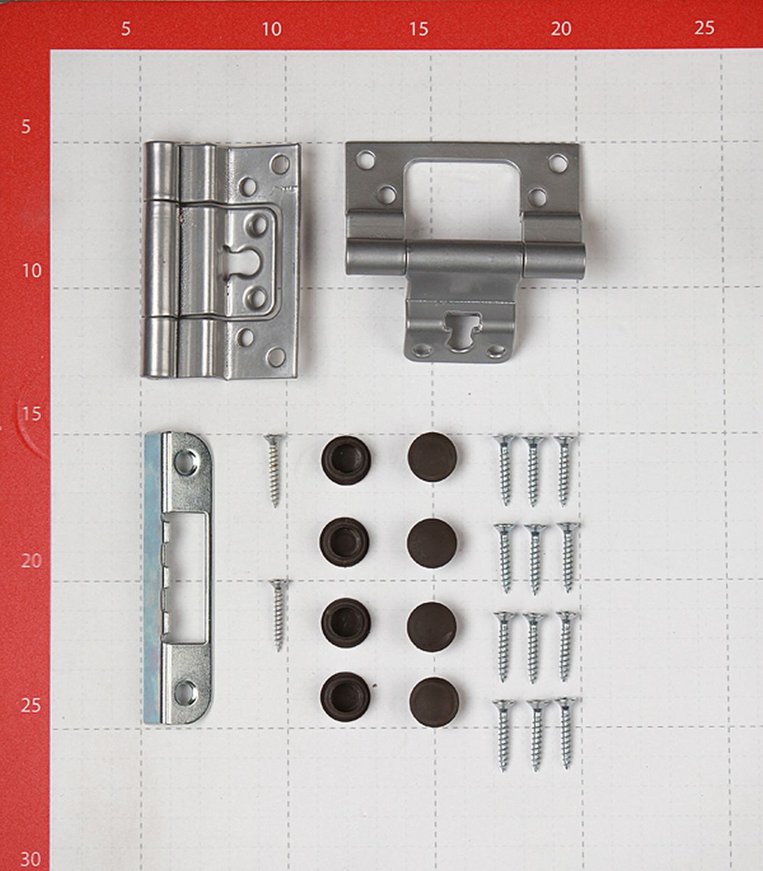 Коробка дверная для полотна 759 мм (две стойки и одна верхняя перекладина), 2 накладные петли, саморезы 12 шт., ответная планка под замок, заглушки 8 шт.