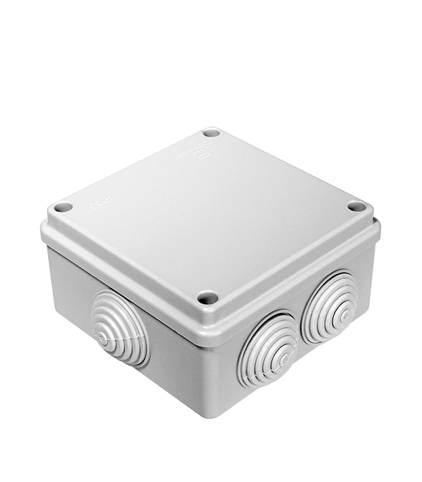 Коробка распределительная Промрукав (40-0300) для открытой установки 100х100х50 мм 6 вводов серая IP55 безгалогенная