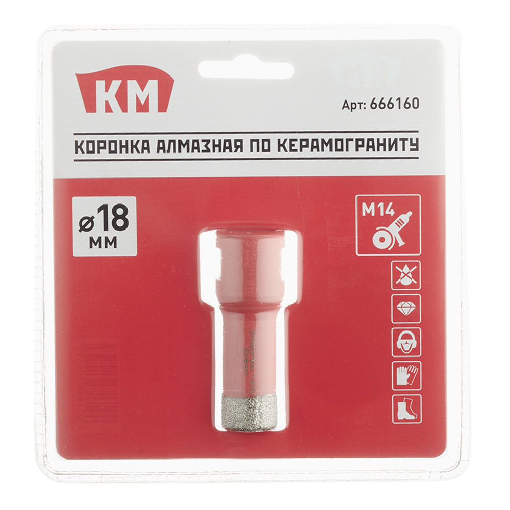 Коронка алмазная КМ (666160) по керамограниту d18 мм для УШМ