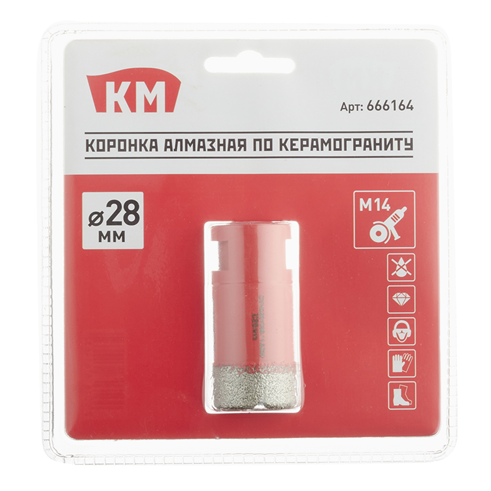 Коронка алмазная КМ (666164) по керамограниту d28 мм для УШМ