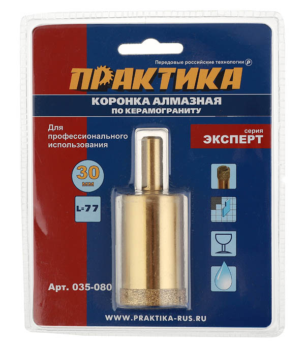 Коронка алмазная Практика (035-080) по керамограниту d30 мм