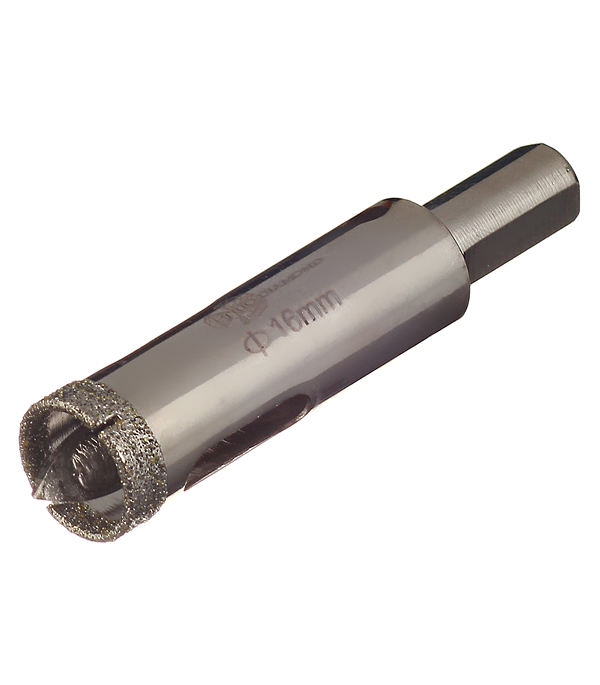 Предназначена для сверления отверстий в керамической, керамогранитной и кафельной плитке при обязательном водяном охлаждении. rnРавномерное распределение зерна на поверхности рабочей части обеспечивает аккуратное сверление материала без трещин и сколов. rnВ комплект входит центрирующее сверло, которое исключает возможность смещения инструмента во время работы.rnМатериал абразива – синтетические алмазы, зерно 60