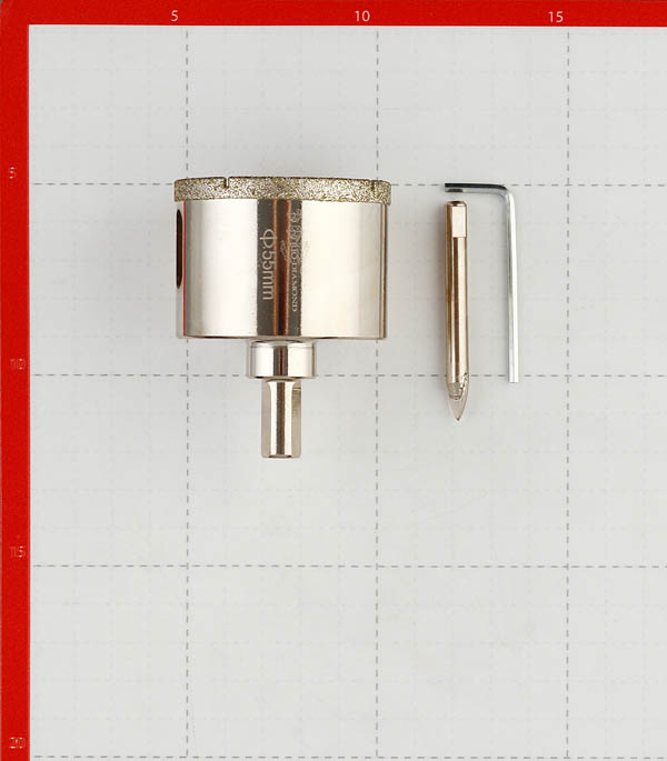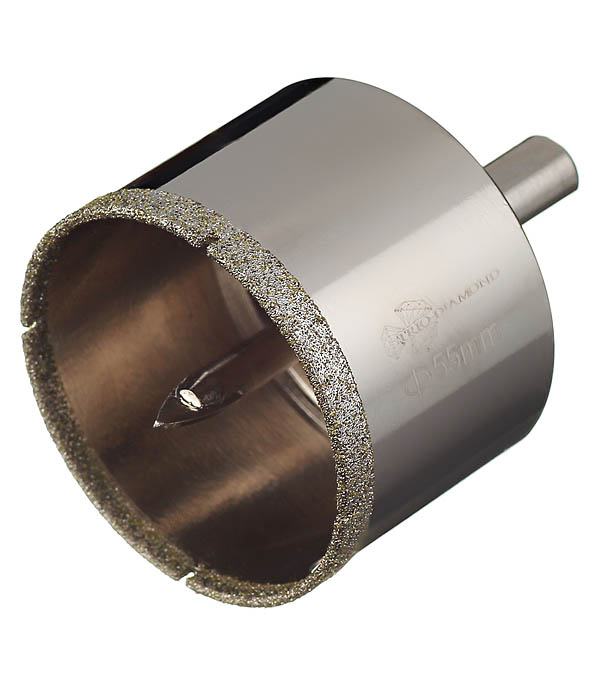 Предназначена для сверления отверстий в керамической, керамогранитной и кафельной плитке при обязательном водяном охлаждении. rnРавномерное распределение зерна на поверхности рабочей части обеспечивает аккуратное сверление материала без трещин и сколов. rnВ комплект входит центрирующее сверло, которое исключает возможность смещения инструмента во время работы.rnМатериал абразива – синтетические алмазы, зерно 60