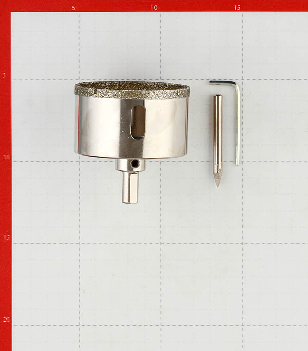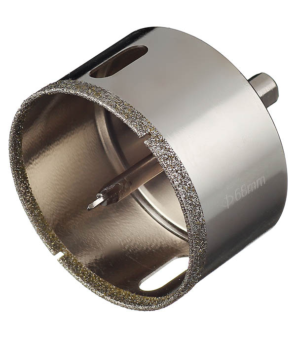 Предназначена для сверления отверстий в керамической, керамогранитной и кафельной плитке при обязательном водяном охлаждении. rnРавномерное распределение зерна на поверхности рабочей части обеспечивает аккуратное сверление материала без трещин и сколов. rnВ комплект входит центрирующее сверло, которое исключает возможность смещения инструмента во время работы.rnМатериал абразива – синтетические алмазы, зерно 60