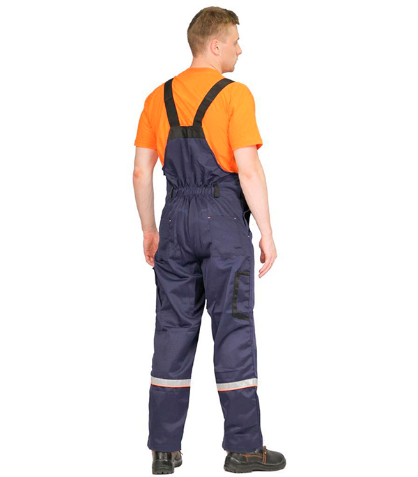Предназначен для использования в качестве защитной спецодежды при проведении строительных и других работ. Полукомбинезон с застёжкой гульфика и застёжкой в правом боковом шве на три петли и пуговицы, верхним накладным карманом и нижними внутренними боковыми карманами, с наколенниками, с накладным карманом на левом боковом шве с клапаном на кнопке с патой, с двумя задними и карманами для инструментов, по спинке вставлена резинка.