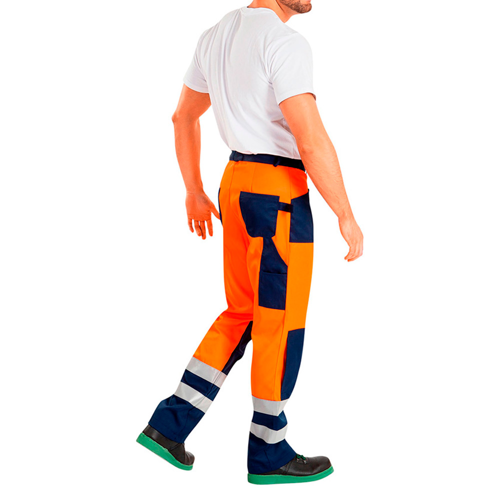 Предназначен для визуального обозначения присутствия работника, как при дневном свете, так и в условиях плохой видимости. 3 класс (ГОСТ 12.4.281-2014)rnРегулировки по ширине – манжеты на кнопках.rnКарманы – нагрудный прорезной с вертикаль-ным входом на молнии, нижние в швах, на брюках – карман для инструментов.rnУсилительные накладки в области коленей со входом для амортизационных вкладышей.