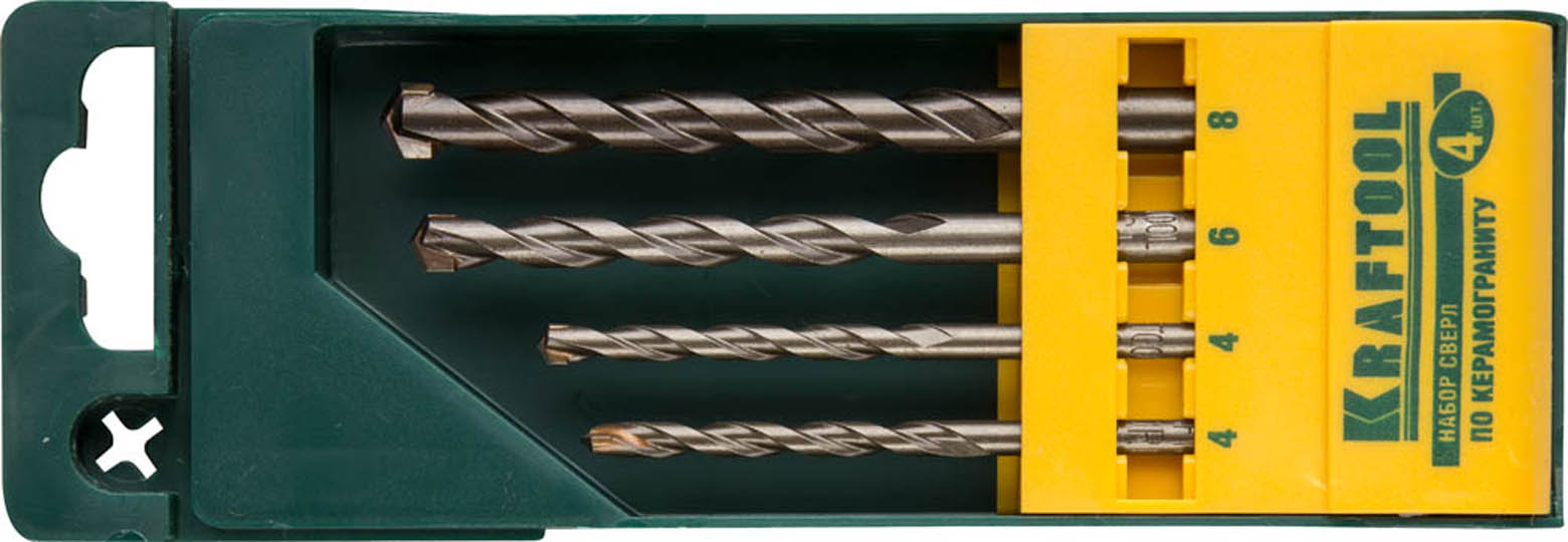 KRAFTOOL 4 шт, 4-4-6-8 мм, набор сверла по керамограниту, цилиндрический хвостовик 29170-H4