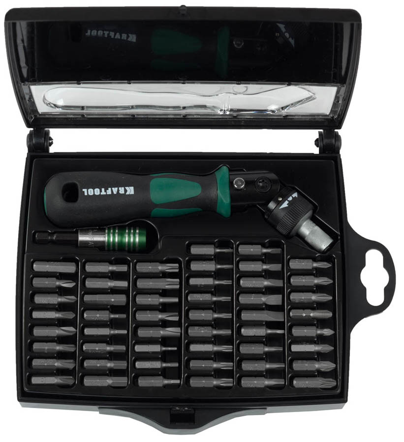 KRAFTOOL 52 шт., отвертка реверсивно-рычажная, с битами 25555-H52