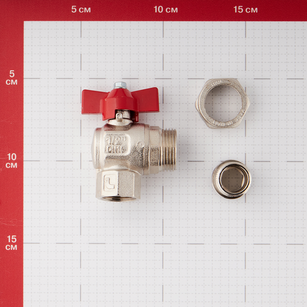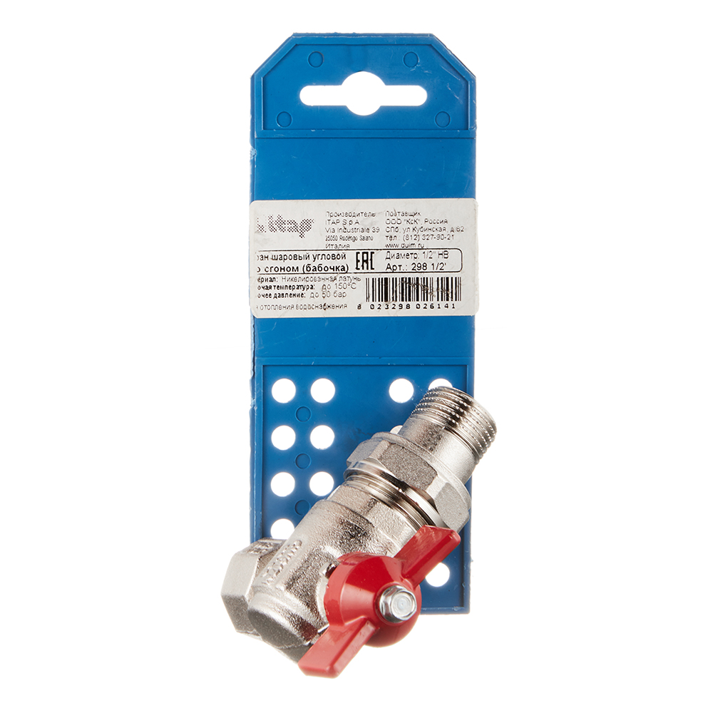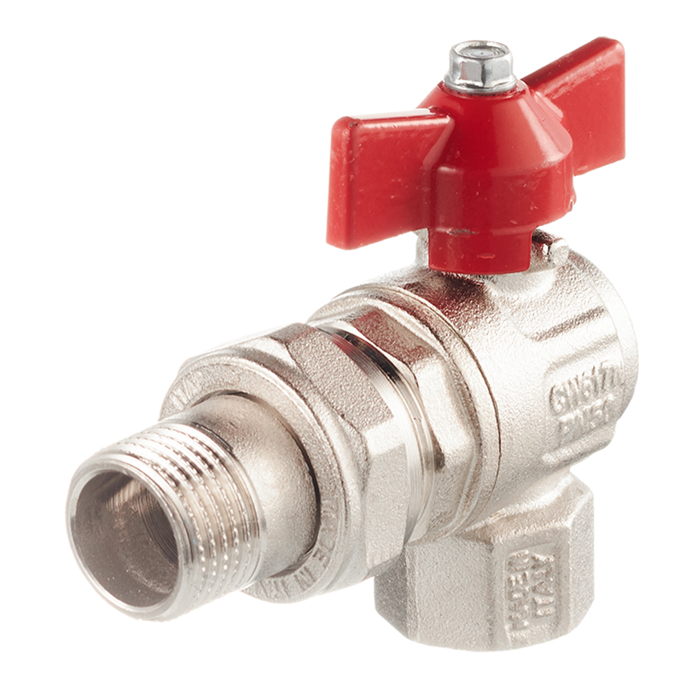 Кран шаровой латунный 1/2 ВР(г) х 1/2 НР(ш) бабочка с полусгоном угловой