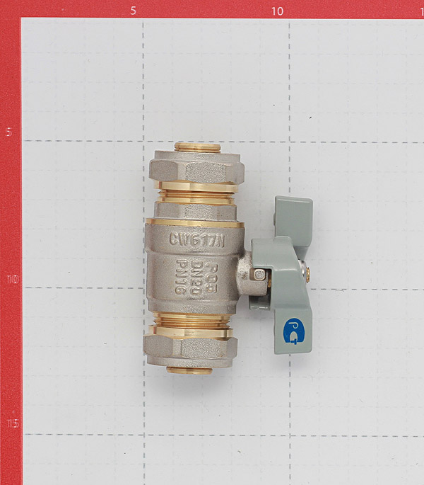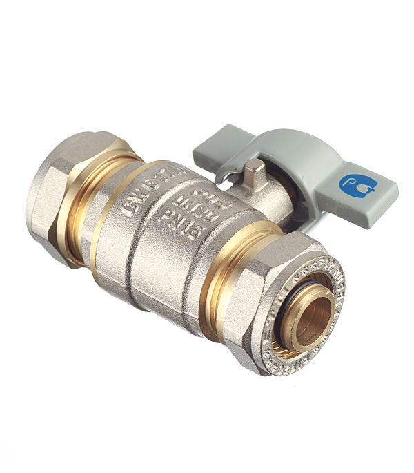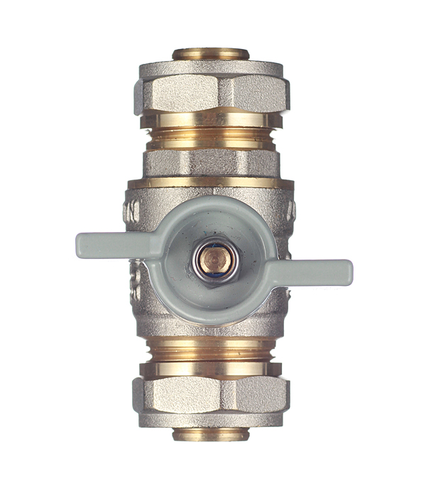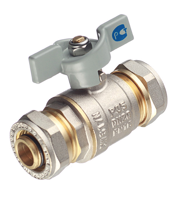 Кран шаровой латунный 20 обж(ц) для металлопластиковых труб бабочка прямой