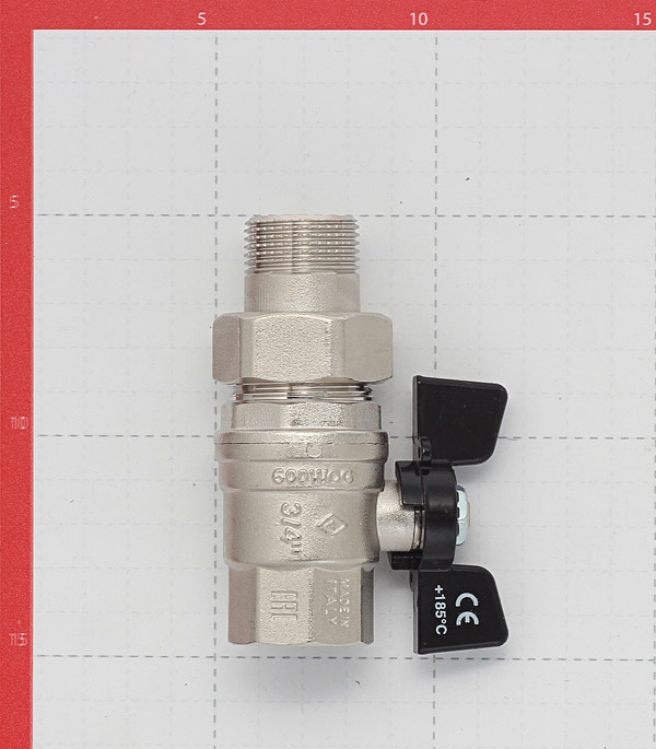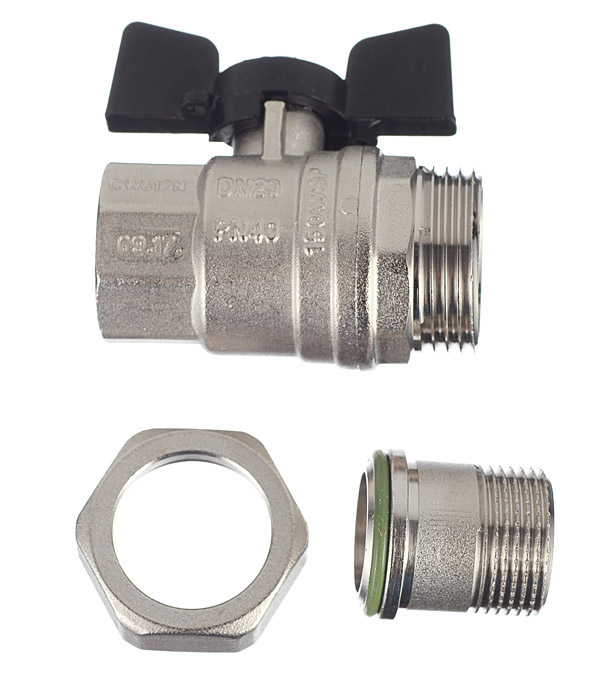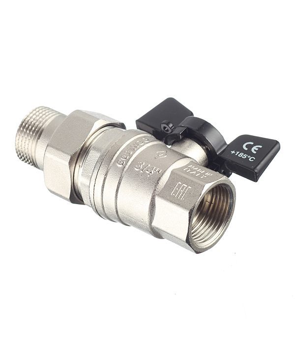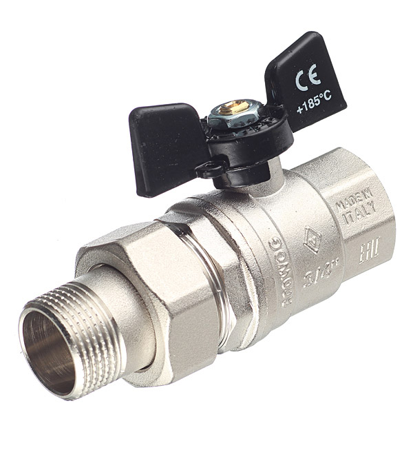 Кран шаровой латунный Bugatti (3220089) 3/4 ВР(г) х 3/4 НР(ш) бабочка с полусгоном прямой