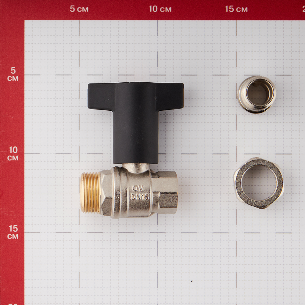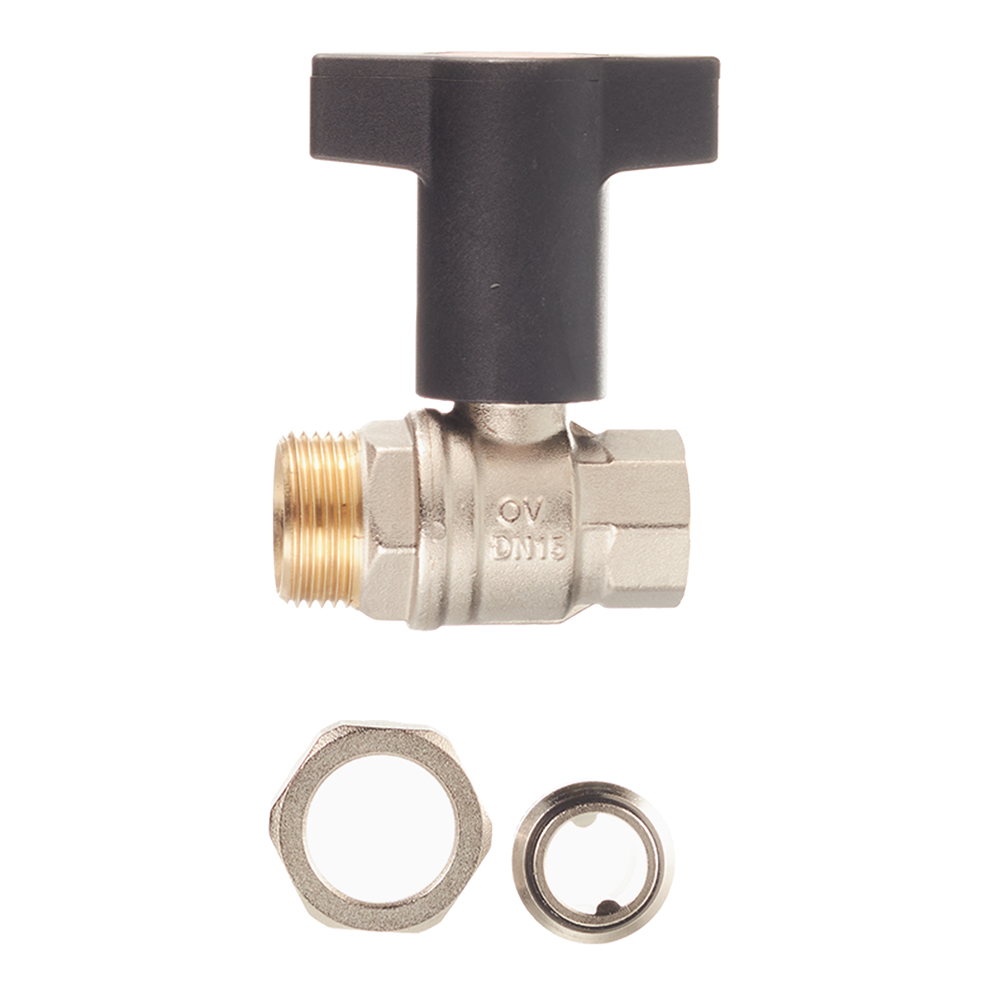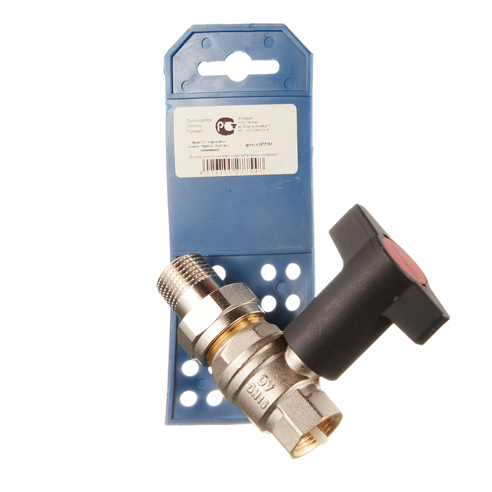 Кран шаровой латунный Oventrop Optibal (1075704) 1/2 ВР(г) х 1/2 НР(ш) бабочка удлиненная с полусгоном прямой