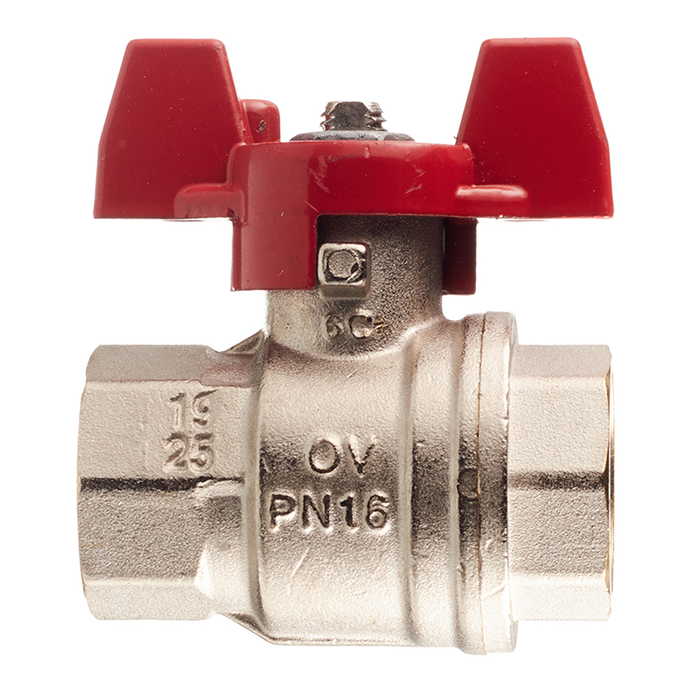 Кран шаровой латунный Oventrop Optibal (1076104) 1/2 ВР(г) х 1/2 ВР(г) бабочка прямой