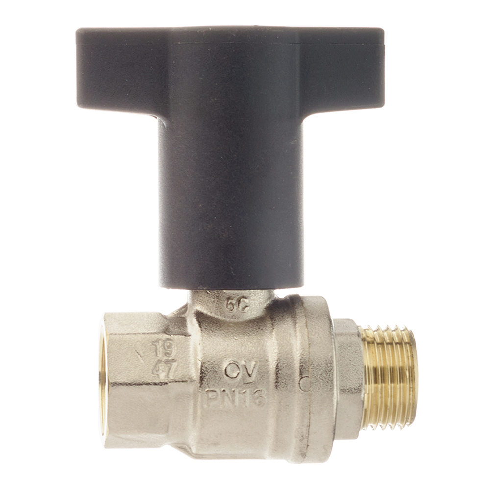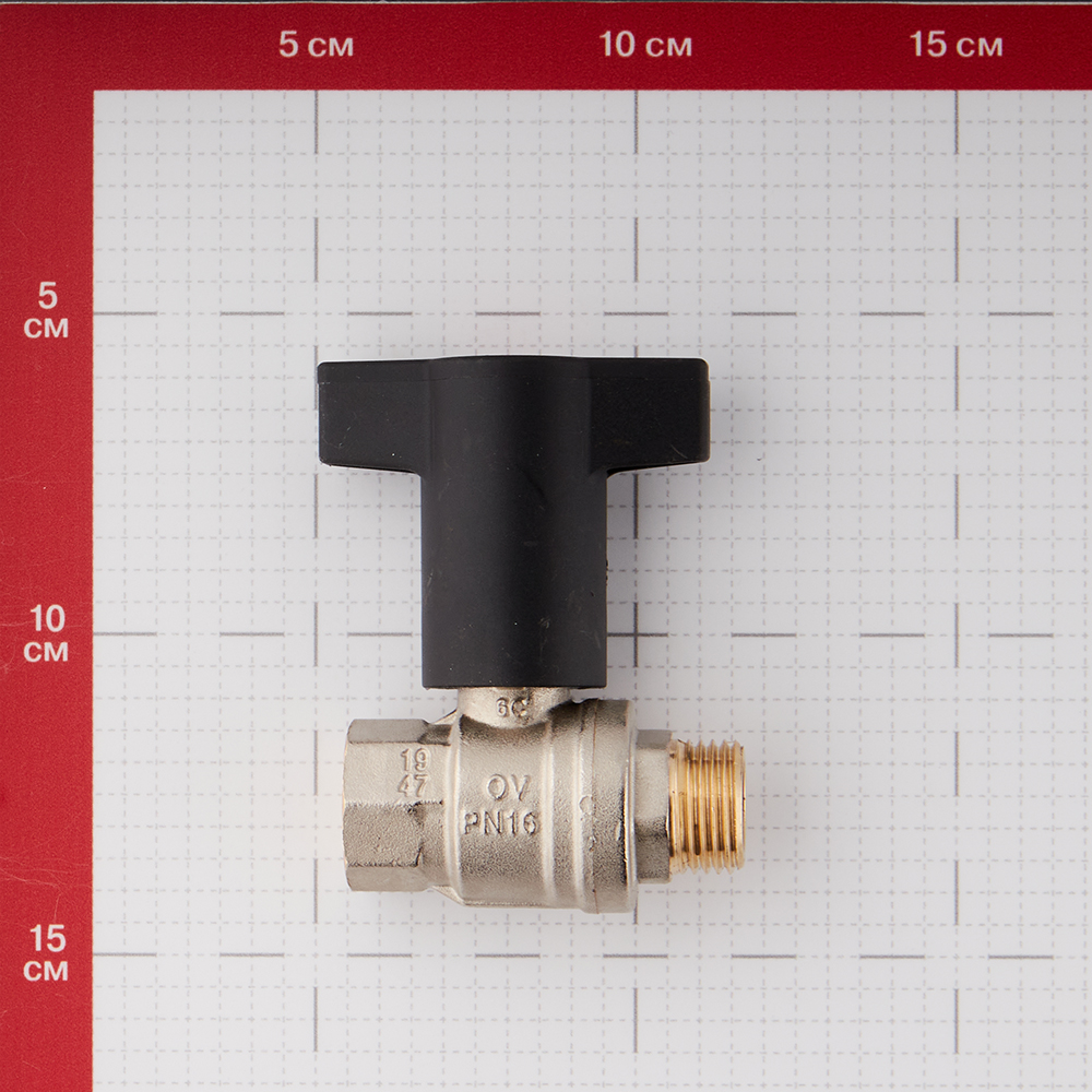 Кран шаровой латунный Oventrop Optibal (1077304) 1/2 ВР(г) х 1/2 НР(ш) бабочка удлиненная прямой