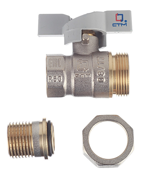 Кран шаровой латунный СТМ 1/2 ВР(г) х 1/2 НР(ш) бабочка с полусгоном прямой