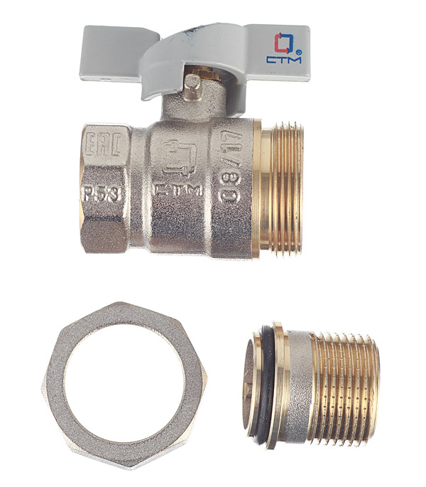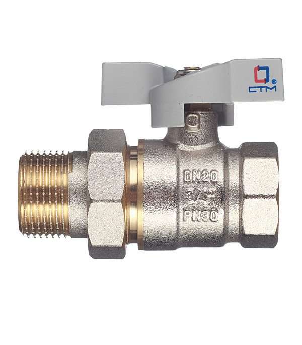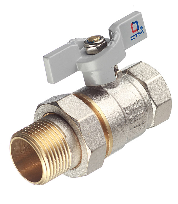 Кран шаровой латунный СТМ 3/4 ВР(г) х 3/4 НР(ш) бабочка с полусгоном прямой