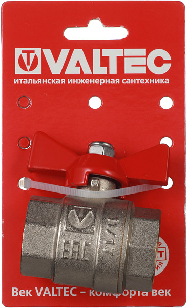 Кран шаровой латунный VALTEC Base (VT.217.N.06) 1 ВР(г) х 1 ВР(г) бабочка прямой