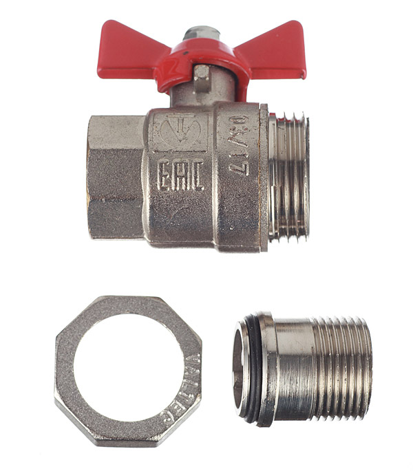 Кран шаровой латунный VALTEC Base (VT.227.N.05) 3/4 ВР(г) х 3/4 НР(ш) бабочка с полусгоном прямой