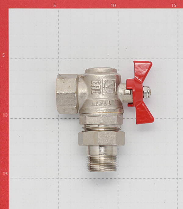 Предназначен для полного открытия или закрытия потока воды.rnПолнопроходной, ремонтопригодный, с увеличенным ресурсом. Соединен накидной гайкой с резьбовым полусгоном.rnКран оснащен ручкой типа «бабочка» с утолщенной стенкой из алюминиевого сплава и эпоксидным покрытием красного цвета.rnРезьба присоединений – внутренняя/наружная.