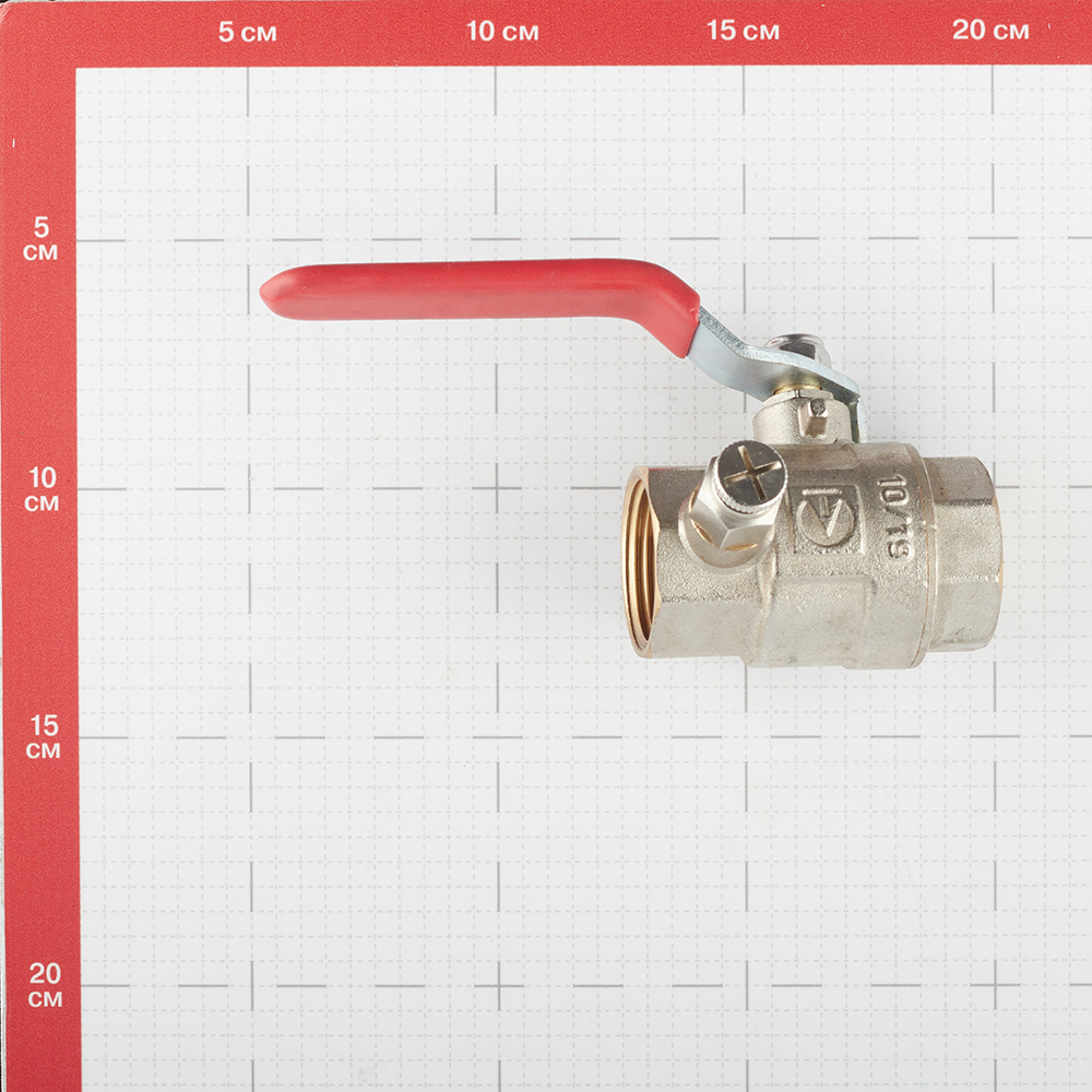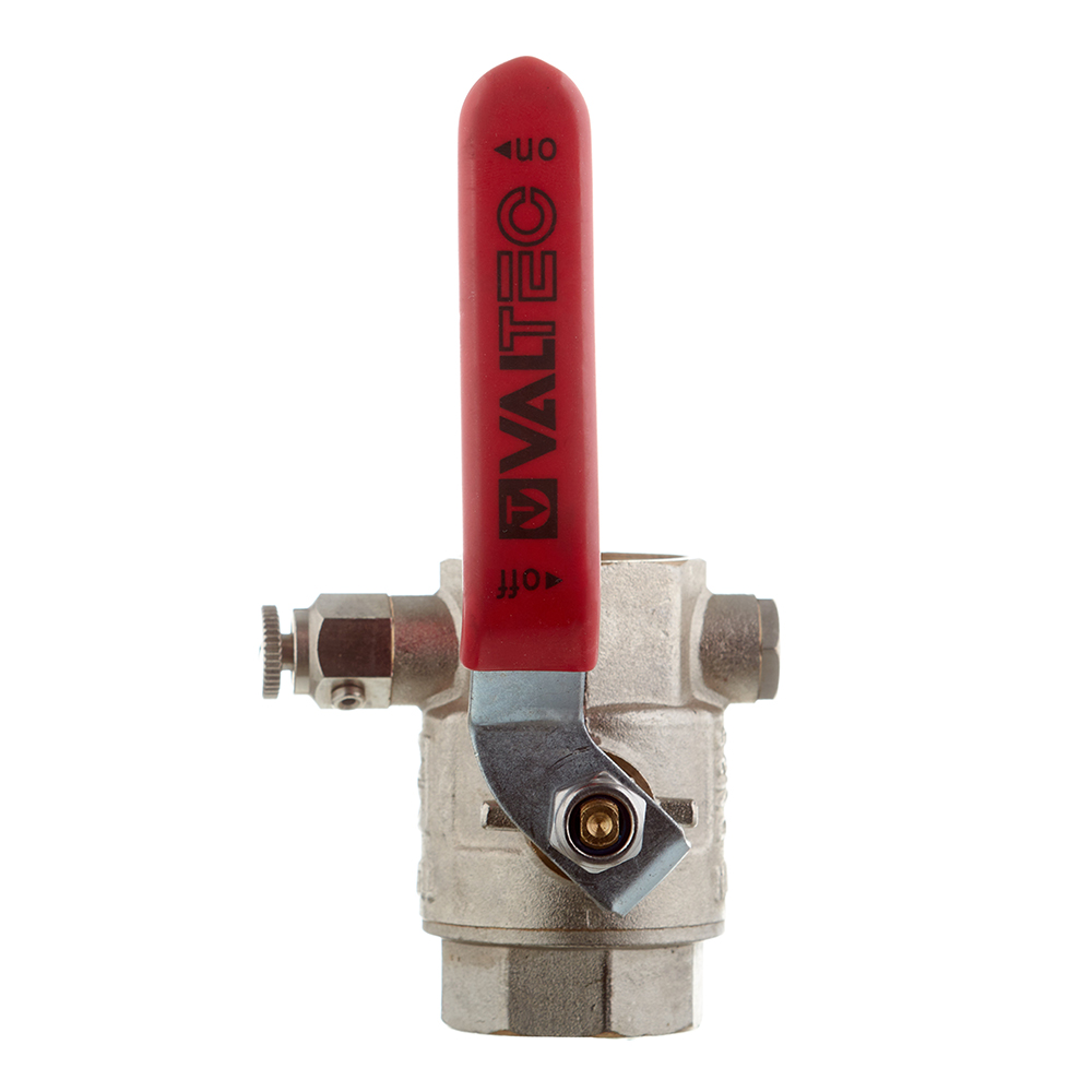 Кран шаровой латунный VALTEC Base (VT.245.N.06) 1 ВР(г) проходной ручка с дренажом и воздухоотводчиком прямой