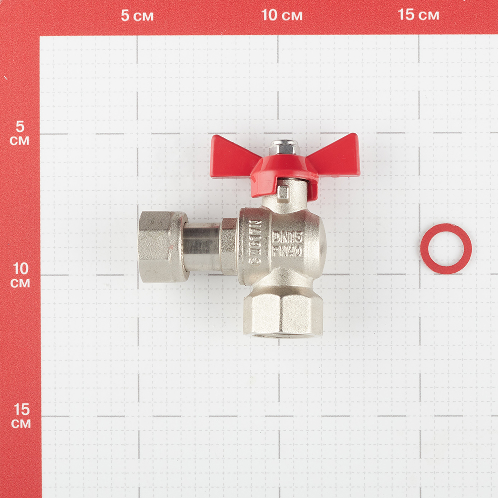 Кран шаровой латунный VALTEC Base (VT.266.N.0404) 1/2 ВР (г) T-образный бабочка с накидной гайкой угловой
