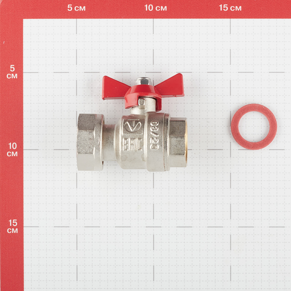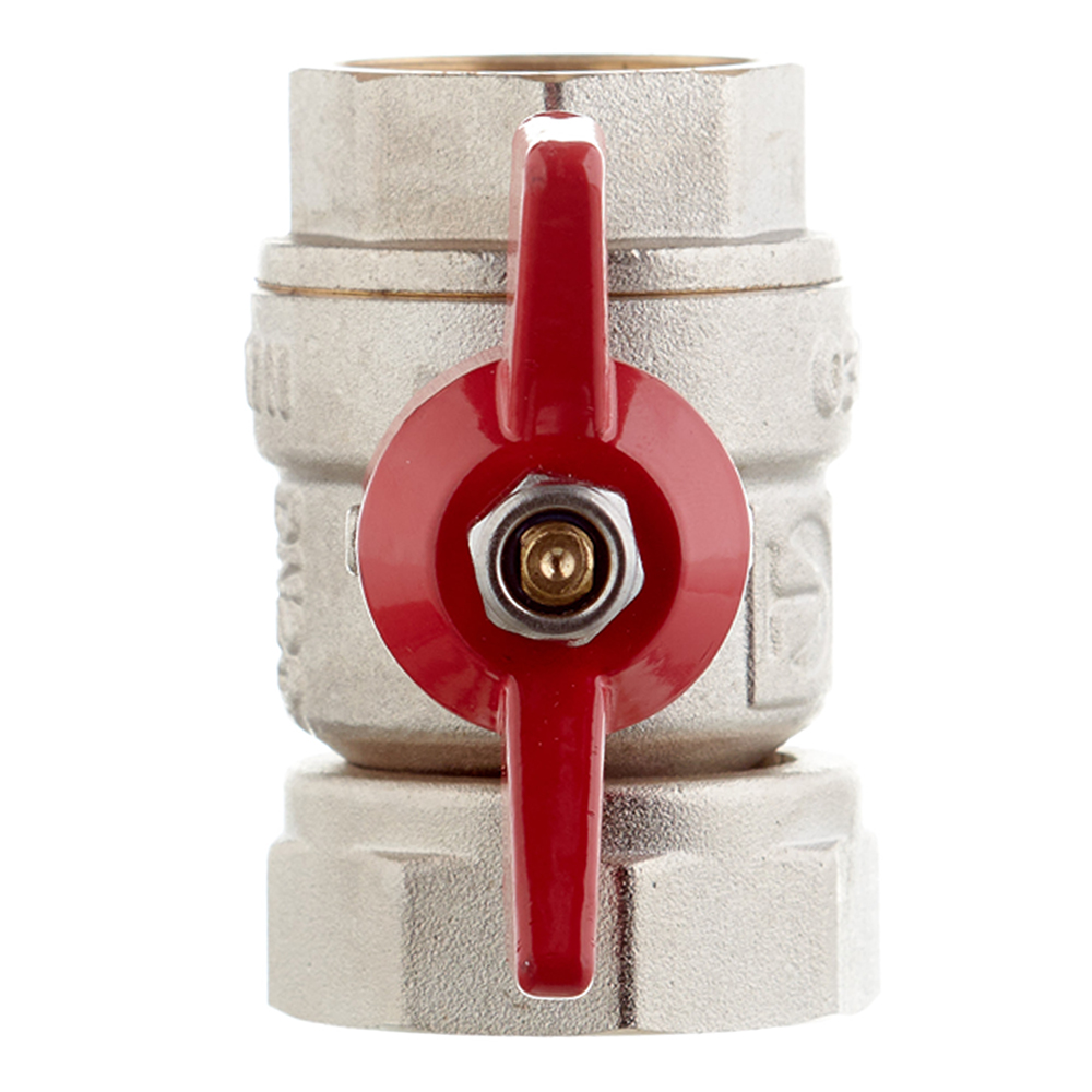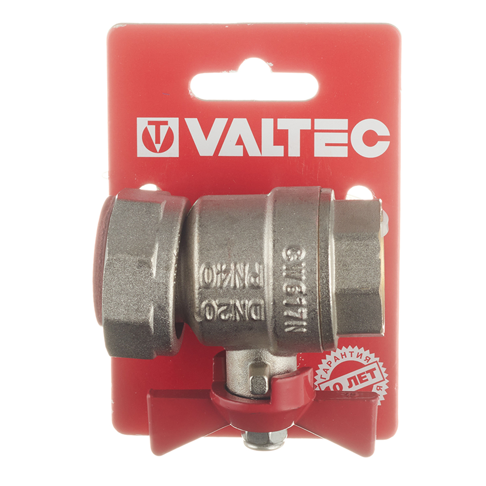 Кран шаровой латунный VALTEC (VT.241.N.0506) 3/4 ВР(г) х 1 ВР(г) проходной бабочка с накидной гайкой прямой