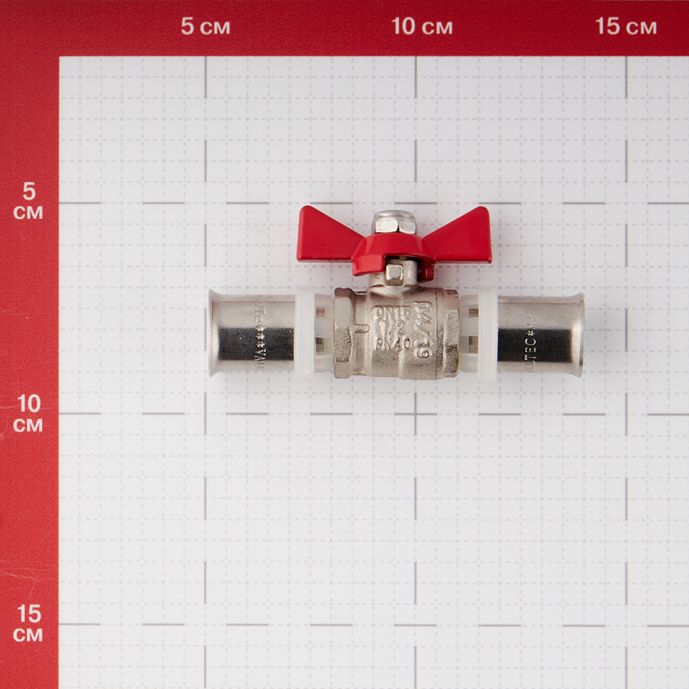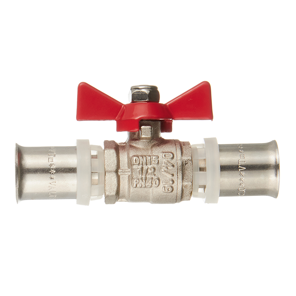 Кран шаровой латунный VALTEC (VT.243.N.1616) 16 мм пресс бабочка прямой