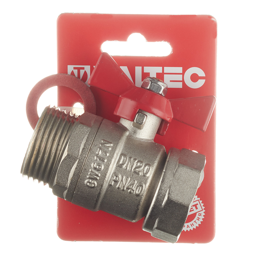 Кран шаровой латунный VALTEC (VT.260.N.0606) 1 ВР(г) проходной бабочка с накидной гайкой прямой