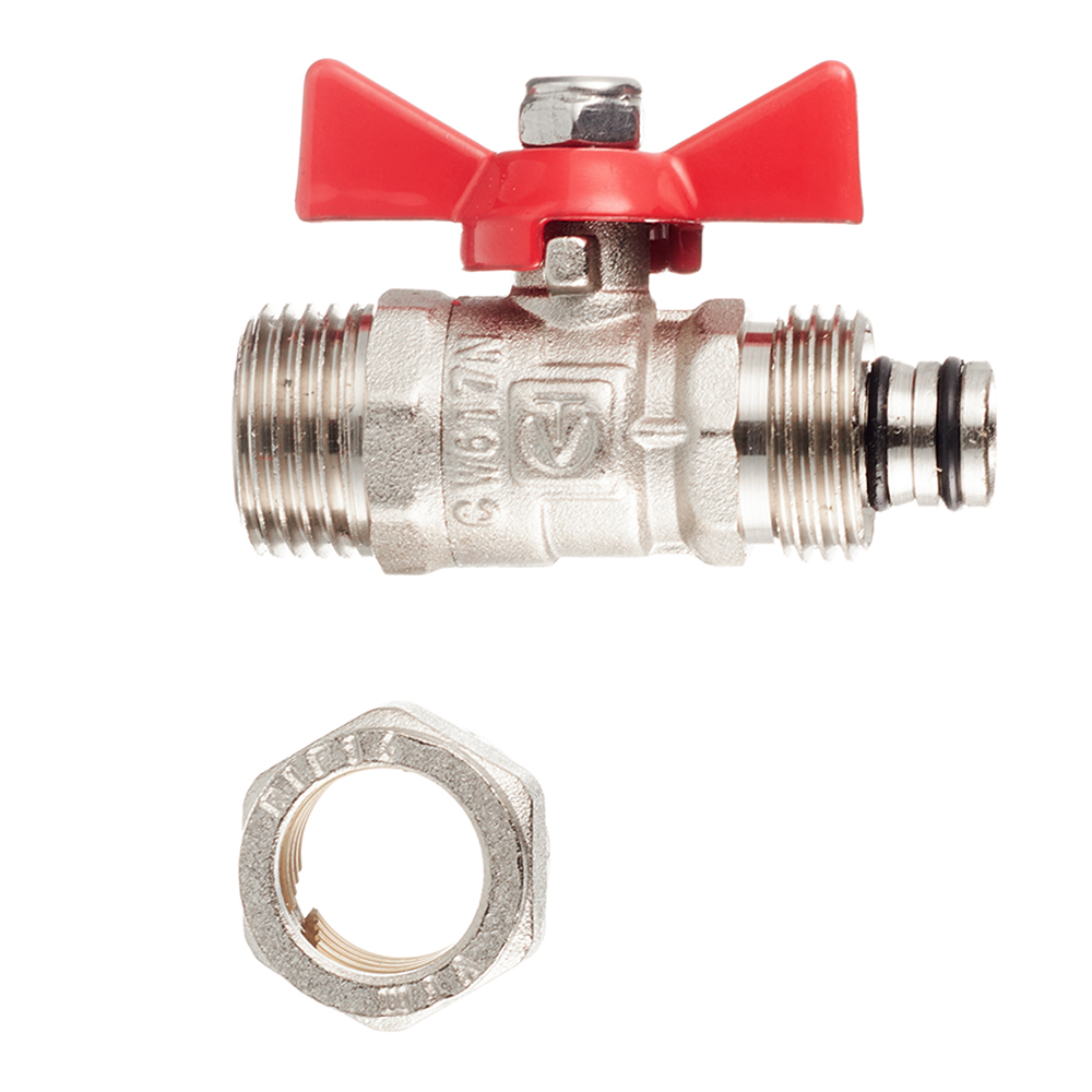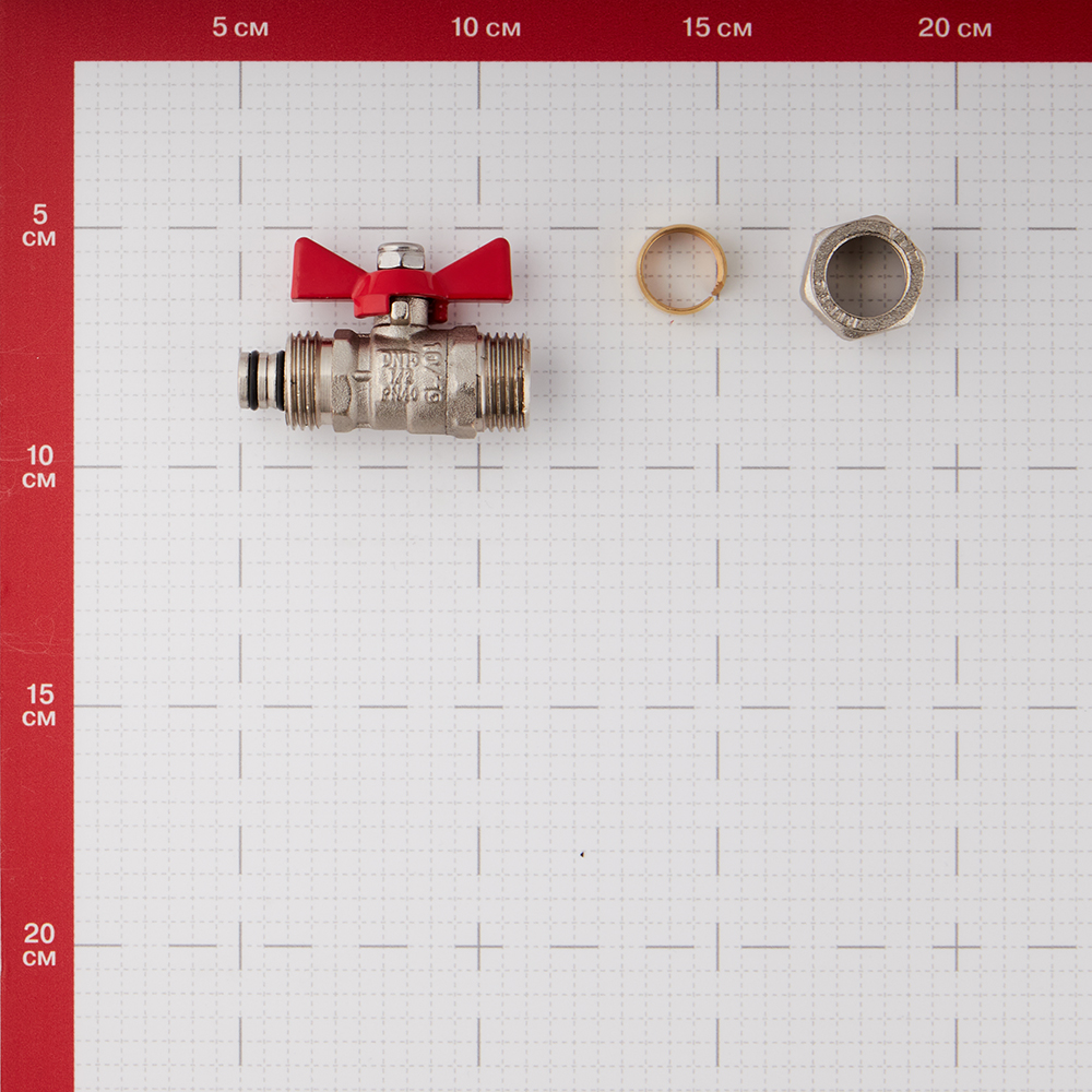 Предназначен для полного открытия или закрытия потока воды.rnИспользуется в составе инженерных систем и технологических установок на основе металлополимерных труб.rnОснащен ручкой типа «бабочка» из алюминиевого сплава с эпоксидной покраской. Соединение с металлополимерным трубопроводом – обжимное, одностороннее; резьба второго патрубка – наружная.rnНе предназначен к применению на стояках, магистральных трубопроводах и участках систем, в которых могут возникнуть изгибающие усилия, передаваемые на корпус крана.