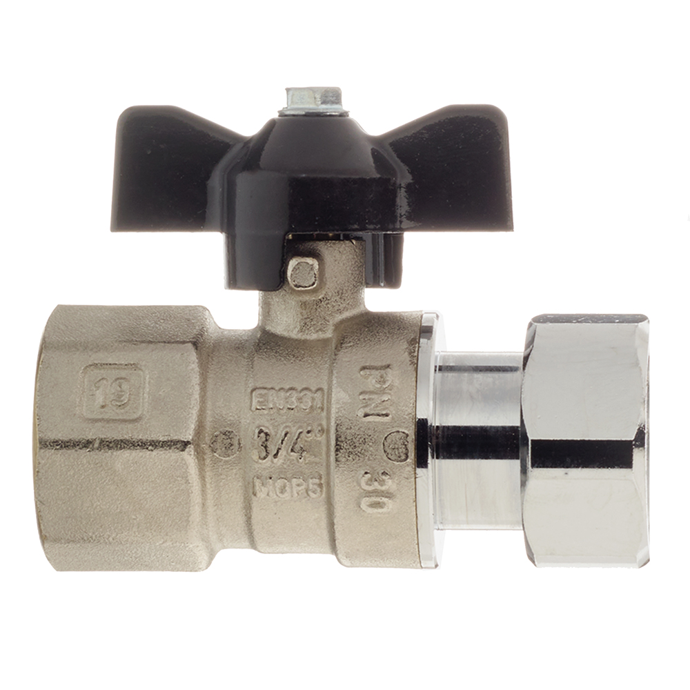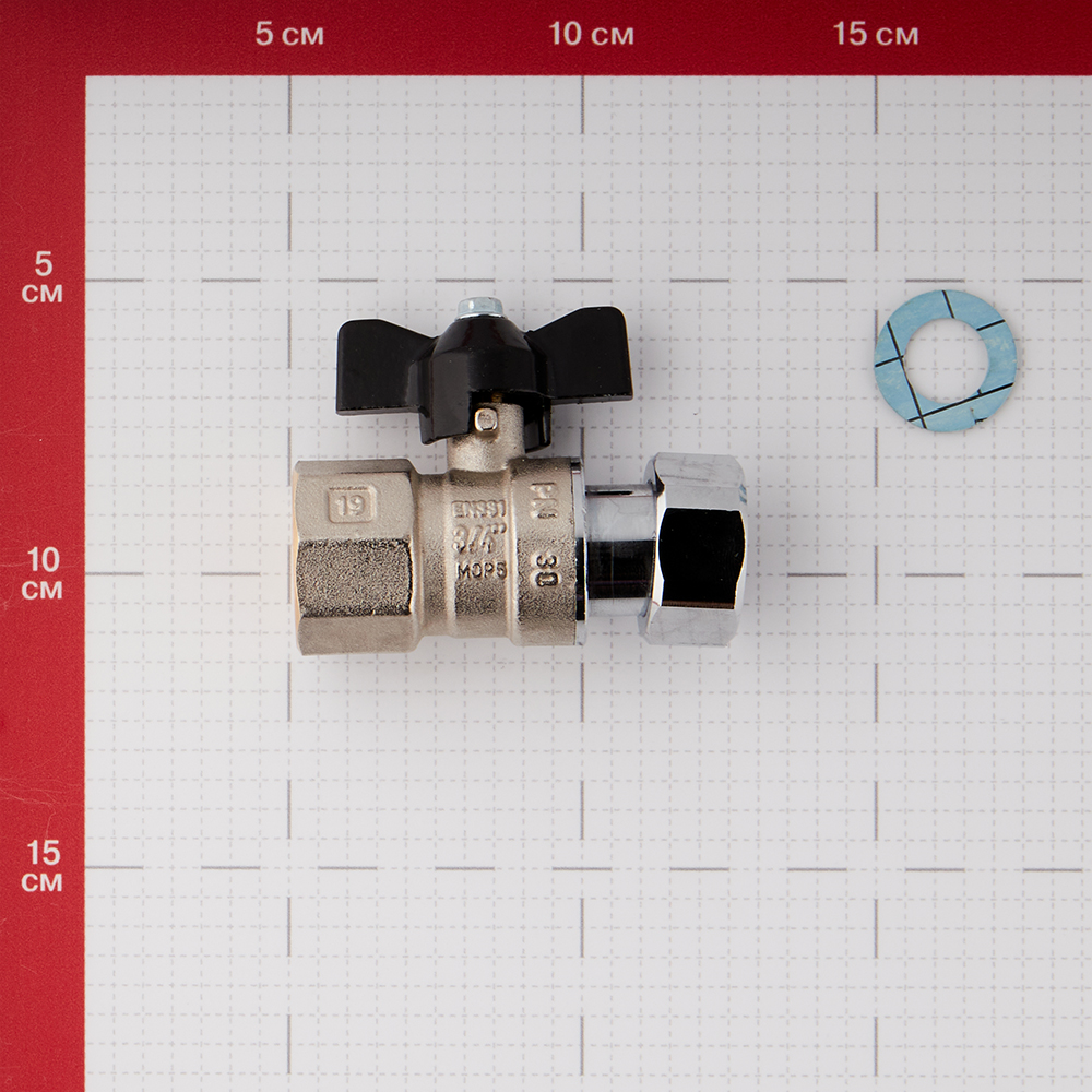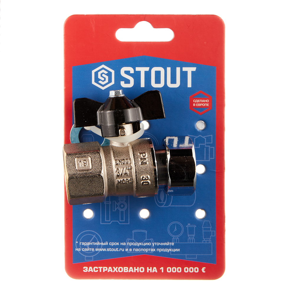 Кран шаровой Stout (SVB-0009-000020) 3/4 ВР(г) х 3/4 ВР(г) бабочка с накидной гайкой прямой