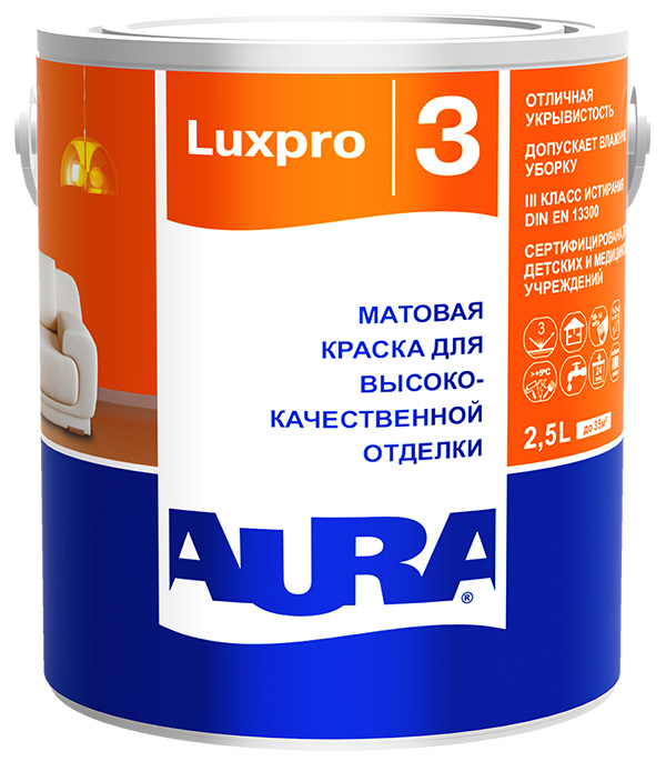 Краска водно-дисперсионная Aura LuxPro 3 влагостойкая белая основа А 2,5 л