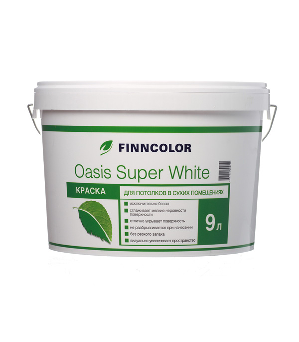 Краска водно-дисперсионная для потолка Finncolor Oasis super white белая 9 л